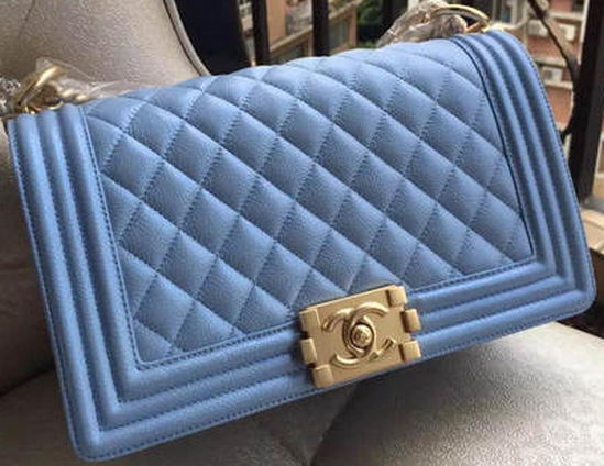 Home » Replica Handbags >> Chanel Handbag >> Chanel Le Boy >> Boy Chanel Flap Shoulder Bag Blue Cannage Pattern A67086 Gold