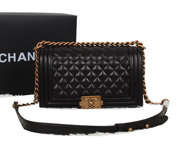 Home » Replica Handbags >> Chanel Handbag >> Chanel Le Boy >> Chanel Black Sheppskin Leather Le Boy Flap Shoulder Bag A67086 Gold