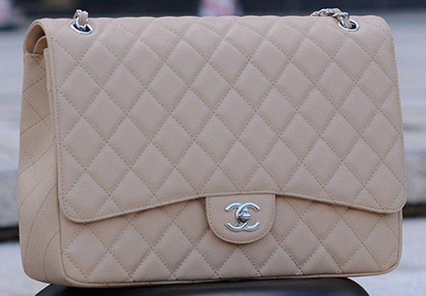 Home » Replica Handbags >> Chanel Handbag >> Chanel Classic Bag >> Chanel Maxi Quilted Classic Flap Bag Apricot Cannage Pattern A58601 Silver