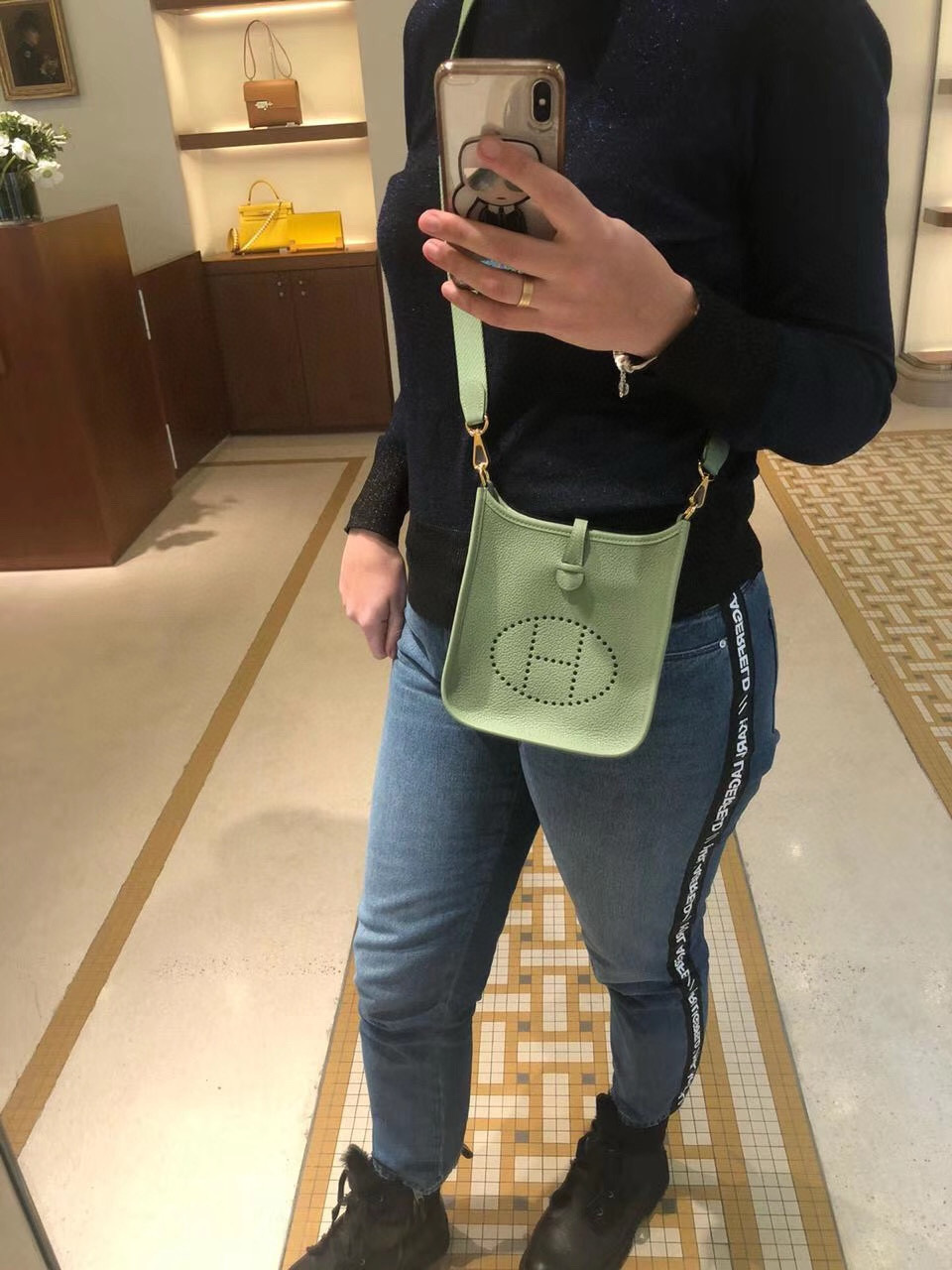 Home » Replica Handbags >> Hermes Handbag >> Hermes Evelyne Bags >> Hermes Evelyne original togo leather mini Shoulder Bag H15698 Green