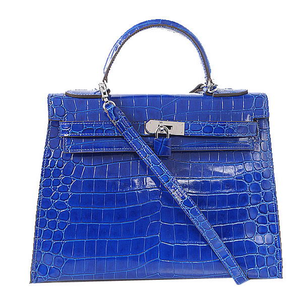 Home » Replica Handbags >> Hermes Handbag >> Hermes Kelly >> Hermes Kelly 32cm Shoulder Bags Blue Iridescent Croco Leather Gold